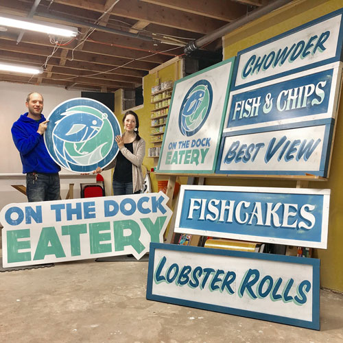We work with traditional sign making materials - enamel paint and signboard - just as the signpainting masters from before our time. The paints are formulated to be as durable and long lasting for both exterior and interior purposes.